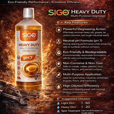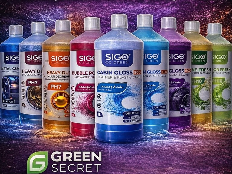 داخل مصانع GREEN SECRET FOR INDUSTRY AND TRADE بالقاهرة الجديدة، تم تطوير SIGO لتكون علامة متخصصة في حلول التنظيف، العناية، الحماية، والتلميع الاحترافي للأسواق المحلية والتصديرية.
